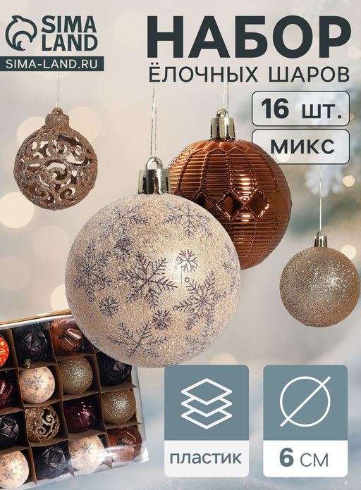 Ёлочные игрушки Винтажный узор, шары новогодние, d=6 см, набор 16 шт., кофейный МИКС