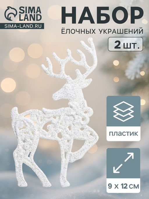 Цена за 2 шт. Ёлочные игрушки 2 шт. Зимнее волшебство. Грациозный олень пластик, 912 см, белый