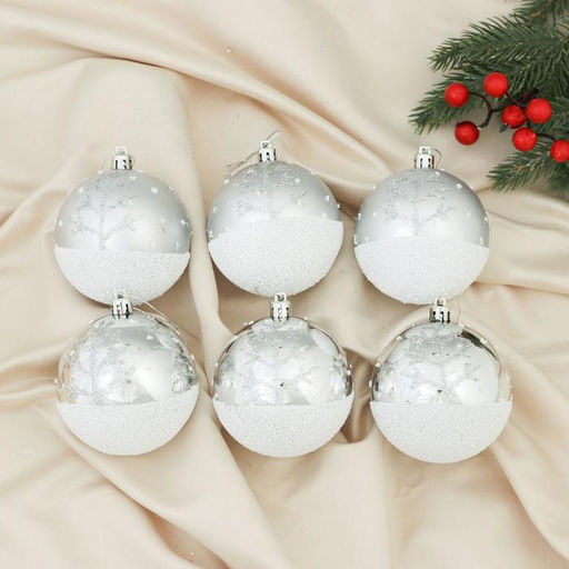 Ёлочные игрушки Заснеженный лес, шары новогодние, d=8 см, набор 6 шт., серебро