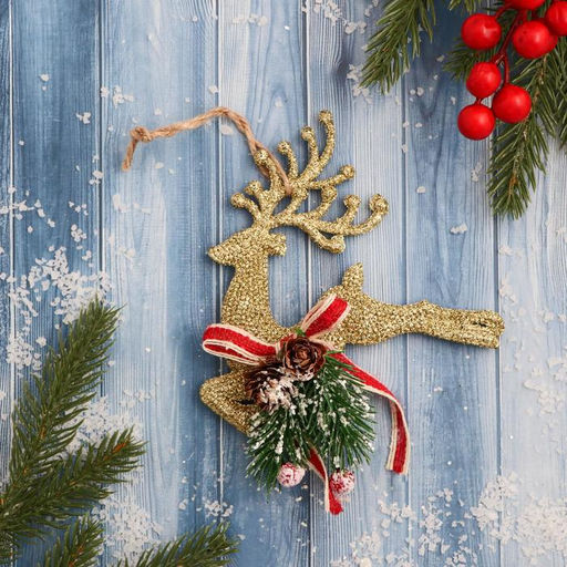 Ёлочные игрушки Олень с шишками и лентой 1316 см, золотистый