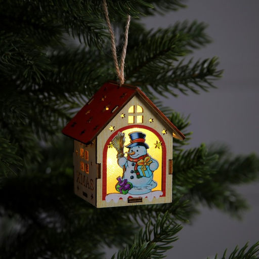 Ёлочная игрушка Домик со снеговиком, 8х7х6 см, 1 LED, от батареек, свечение тёплое белое