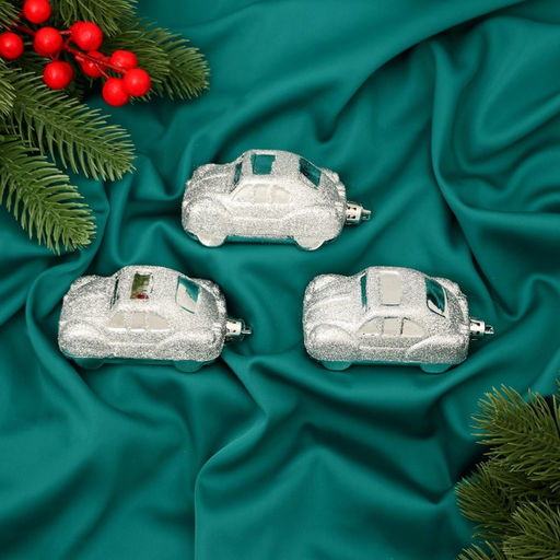 Ёлочные игрушки 3 шт., Зимнее волшебство, Машинки пластик, 93.5 см, серебро