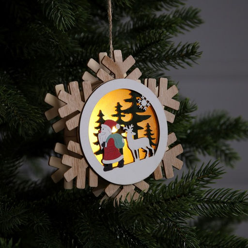 Ёлочная игрушка Дед Мороз с подарками, 15.5 см, 1 LED, от батареек, свечение тёплое белое