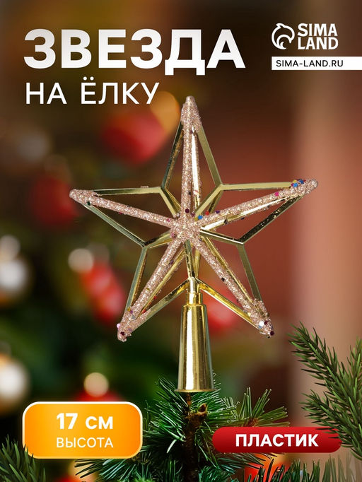 Звезда на ёлку (верхушка) объем блеск, 1517 см, золото