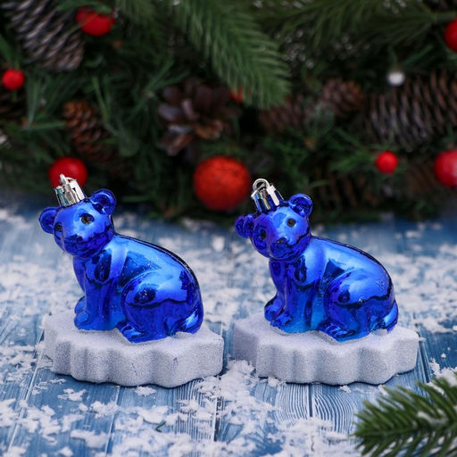 Ёлочные игрушки 2 шт. Зимнее волшебство. Мишутка на льдине пластик, 5.57.58 см, синий