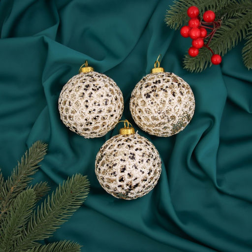 Ёлочные игрушки Тьяго, шары новогодние, d=8 см, набор 3 шт., белый
