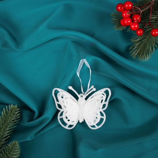 Цена за 2 шт. Ёлочная игрушка Зимнее волшебство. Бабочка перелив пластик, 87 см, белый