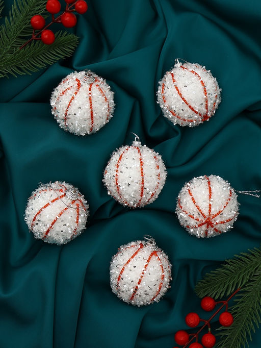 Ёлочные игрушки Вилей, шары новогодние, d=6 см, 6 шт., белый