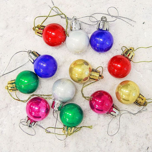 Цена за 2 шт. Ёлочные игрушки Глянец, шары новогодние, d=2.5 см, набор 12 шт., МИКС
