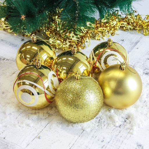 Ёлочные игрушки Круги, шары новогодние, d=10 см, набор 6 шт., золото