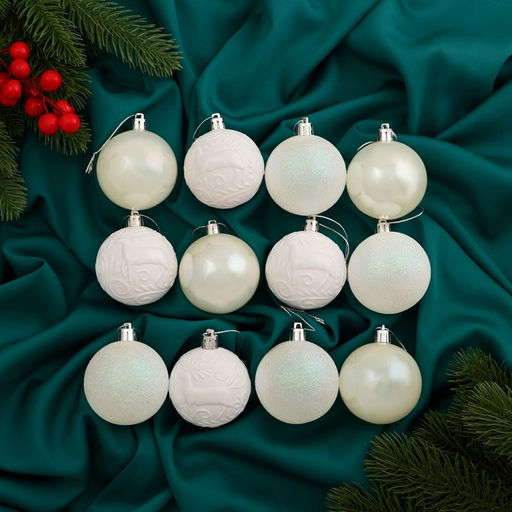Ёлочные игрушки Мелодия, шары новогодние, d=6 см, набор 12 шт., узор блеск, белый