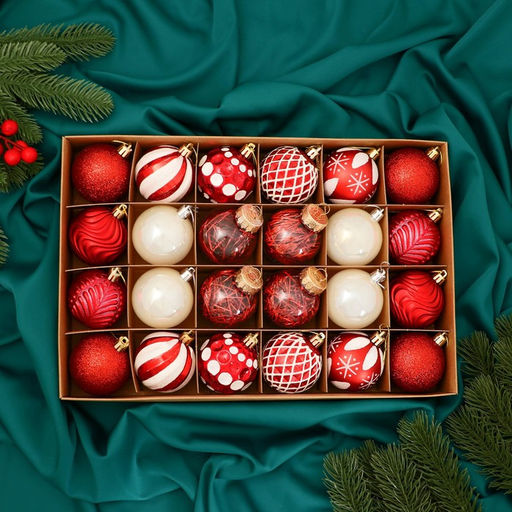 Ёлочные игрушки Мелодия ассорти люкс, шары новогодние, d=6 см, набор 24 шт., бело-красный