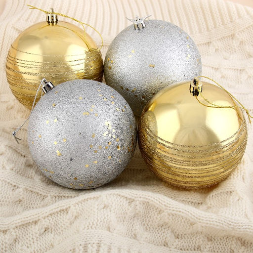 Ёлочные игрушки Айола, шары новогодние, d=10 см, набор 4 шт., золотисто-серебристый