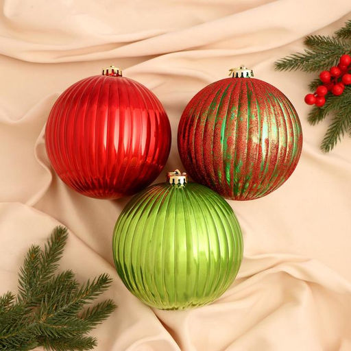 Ёлочные игрушки Пальмира полосы, шары новогодние, d=15 см, набор 3 шт., МИКС