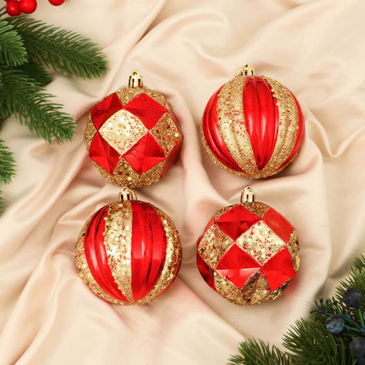 Ёлочные игрушки Праздничный блеск, d=8 см, набор 4 шт., красно-золотой