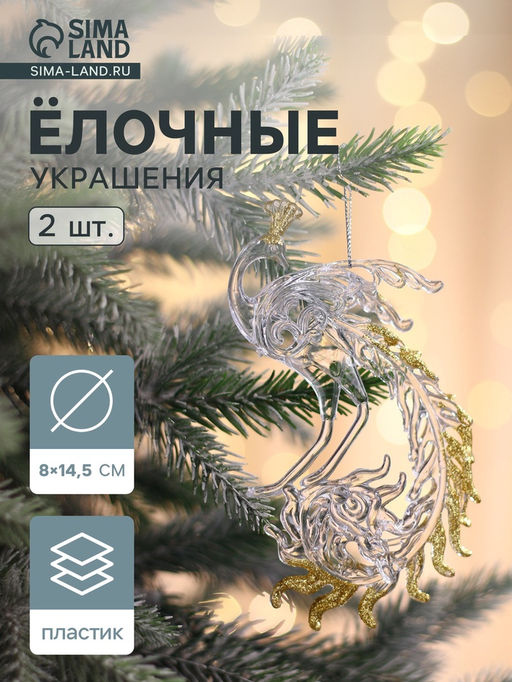 Цена за 2 шт. Ёлочные игрушки 2 шт. Зимнее волшебство. Жар-птица с золотинкой, 814.5 см, прозрачно-золотой