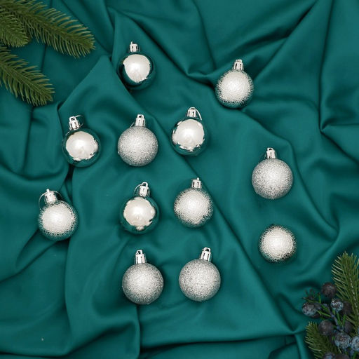 Цена за 2 шт. Ёлочные игрушки Анданте, пластиковые, набор 12 шт., d=4 см, серебристый