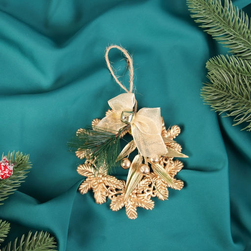 Ёлочная игрушка Венок с веточкой 1111 см, золото