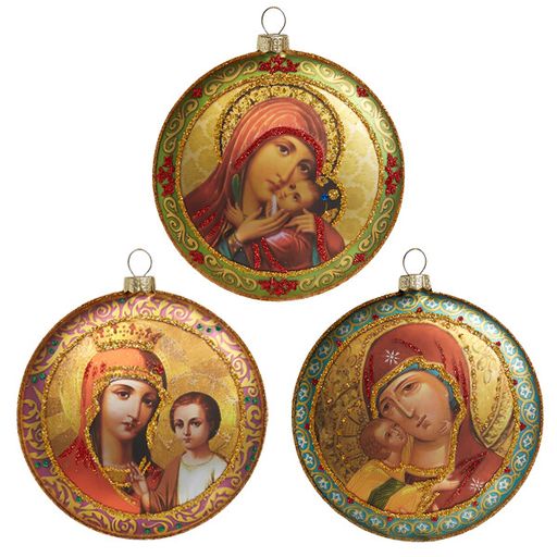 Медальон "Образ Божией Матери" двусторонний, асс. из 3-х (стекло) П/У 10 см