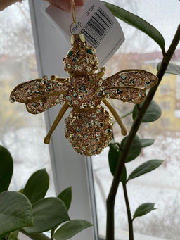 Распродажа! Пчела золотая с пайетками (стекло) 11,5х4,5х10,5 см