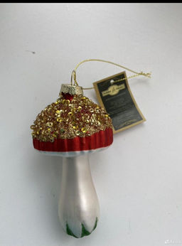 Гриб красный с золотыми пайетками (стекло) 7,5х7,5х10 см