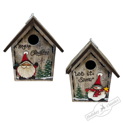 Скворечник декоративный с рождественским рисунком асс. из 2-х (дерево) 14,5х11,5х18,5 см
