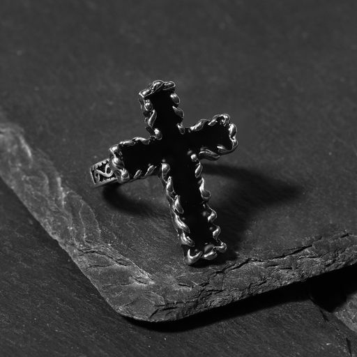 Кольцо Перстень крест, цвет чернёное серебро, безразмерное