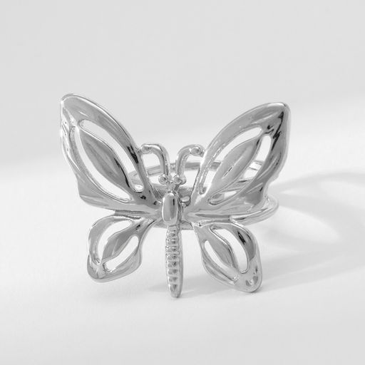 Кольцо металл Бабочка контур, цвет серебро, безразмерное