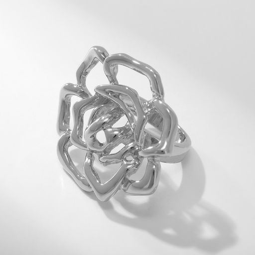 Кольцо металл Цветок роза, цвет серебро, размер 16