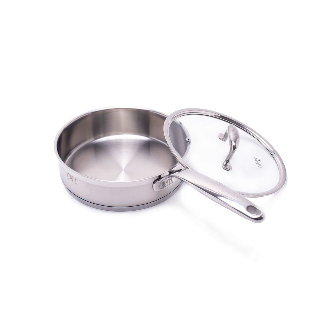1220 GIPFEL Сковорода PRESTIGE 24х6,5см, со стеклянной крышкой, с индукционным капсульным дном. Материал: нерж. сталь 18/10. Толщина: 0,7мм
