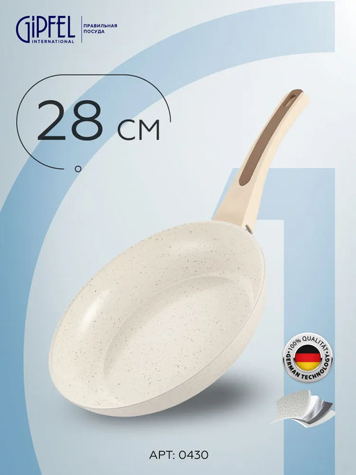 0430 GIPFEL Сковорода SONRIZO 28см из кованого алюминия с индукционным дном, с 3-слойным антипригарным мраморным покрытием Excilon Marble, c бакелитовой ручкой с покрытием Soft Touch. Толщина: 2,0/4,0