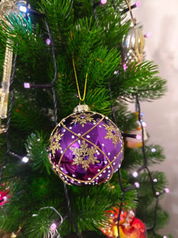 Шар "Золотые снежинки" фиолетовый (стекло) 8 см