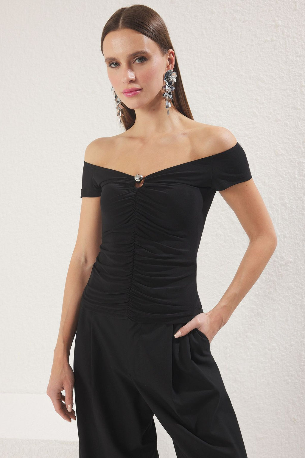 Siyah Carmen Yaka Aksesuarl? Orme S?k Bluz TPRSS25BZ00046