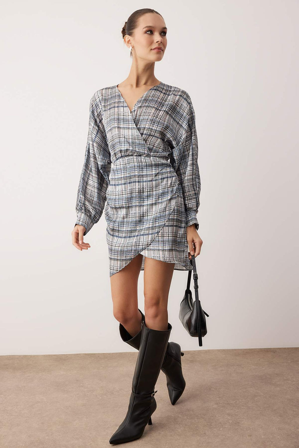 Cok Renkli Ekose / Kareli K?sa / Mini Dokuma Elbise TWOAW26EL00269