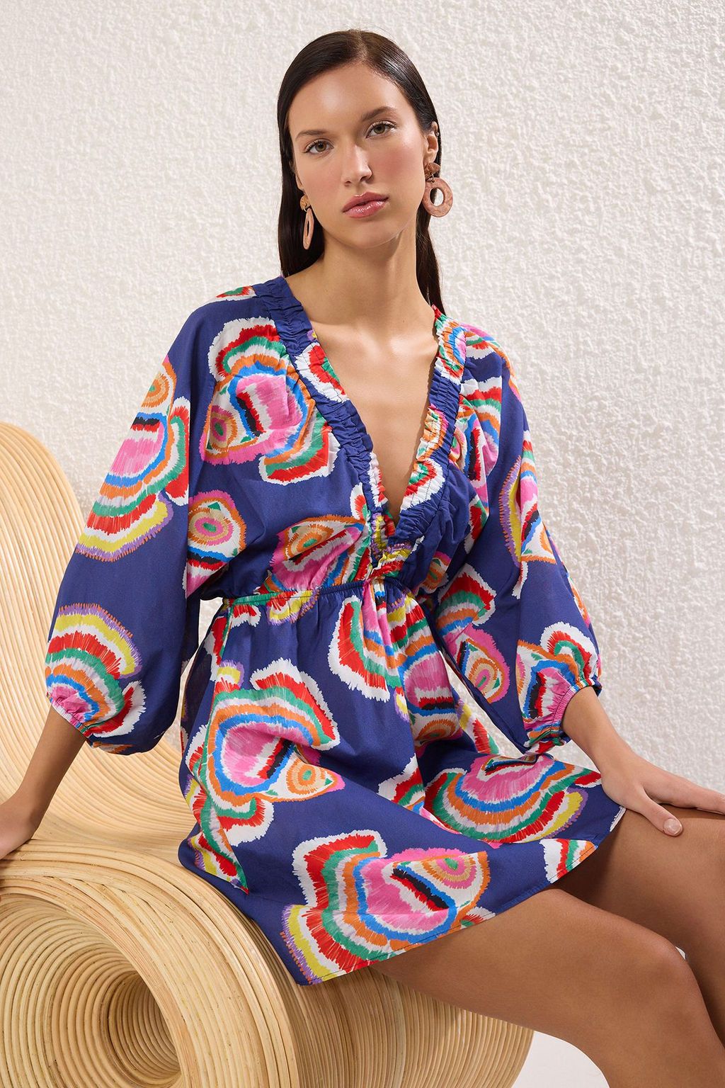 TRENDYOLMILLA K?rm?z? Mini Dokuma Balon Kollu %100 Pamuk Plaj Elbisesi TBESS25EL00082