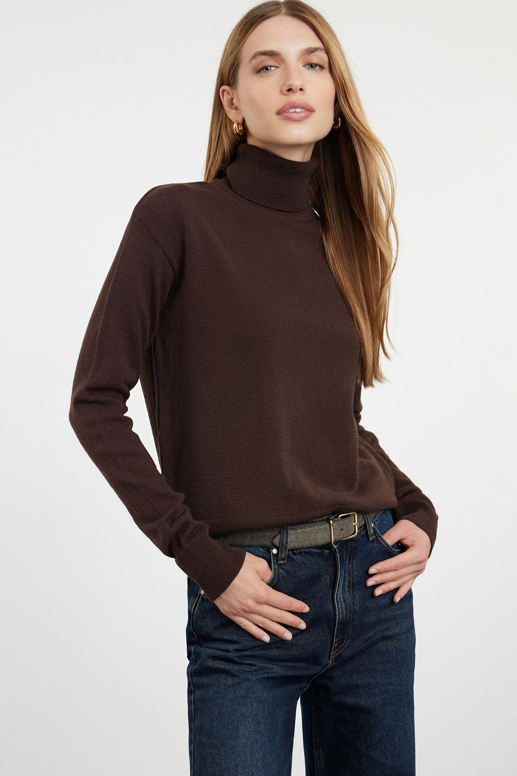 Koyu Kahverengi Yunlu Bal?kc? Yaka Triko Kazak TWOAW25KZ00026