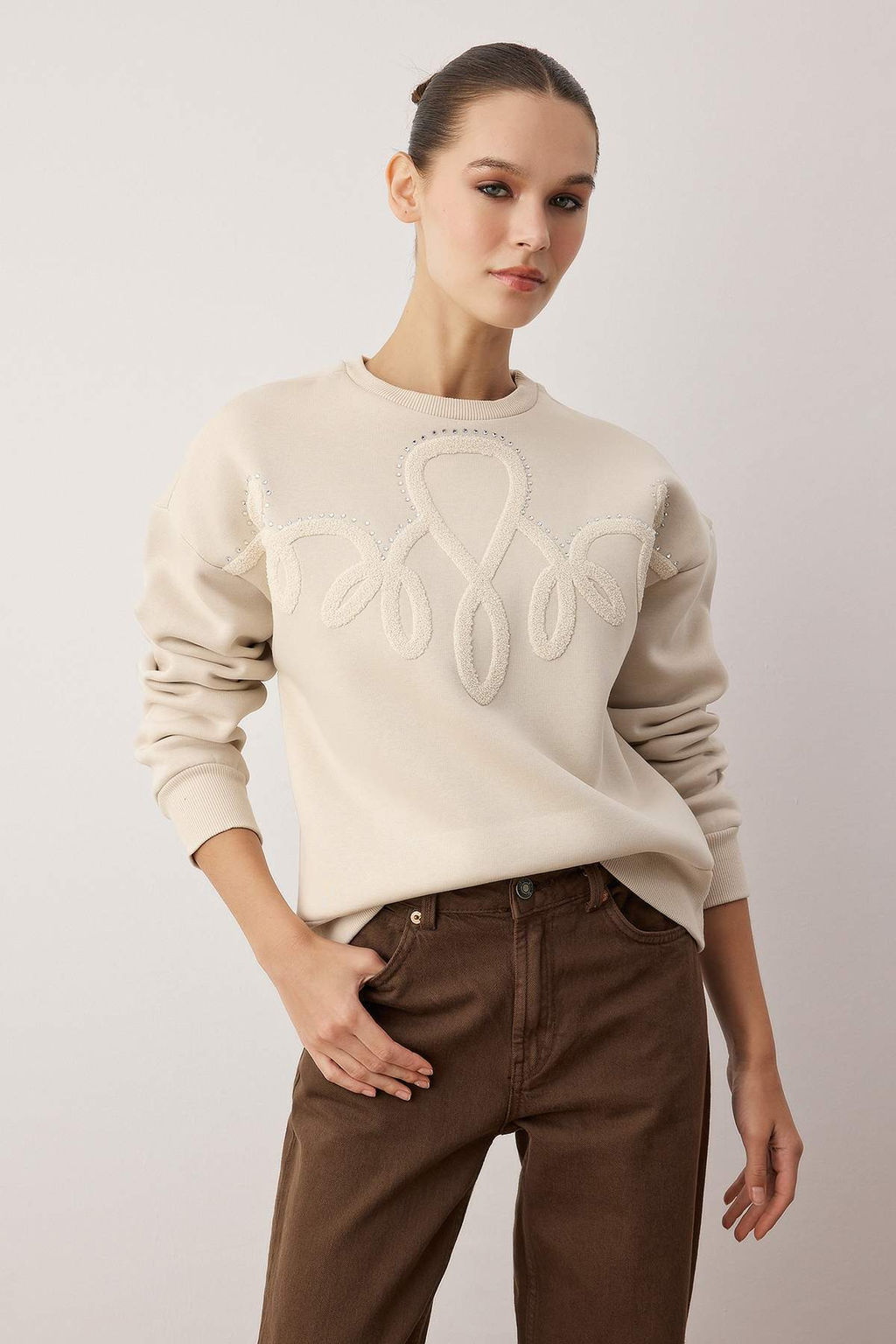 Tas Suzene Nak?s Detayl? Oversize/Genis Kal?p Kal?n Ici Polarl? Orme Sweatshirt TWOAW26SW00098