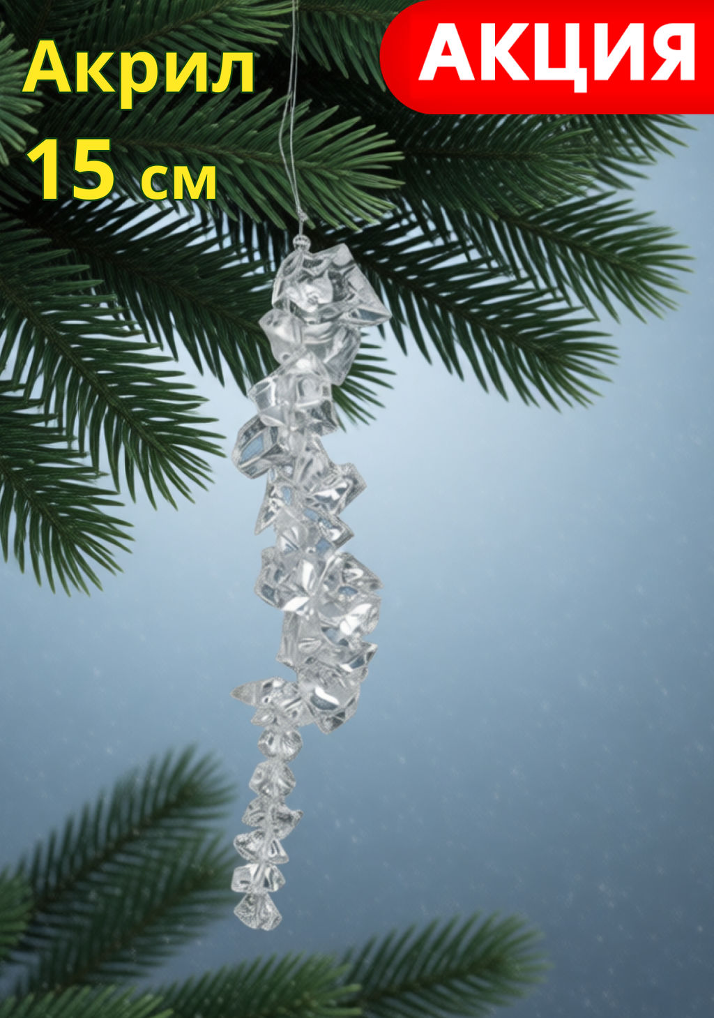 Игрушка елочная, 15 см, акрил, Хрустальная сосулька, Event
