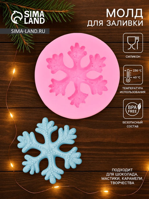 Молд для заливки новогодний Снежинка, силикон, d=6.7 см, розовый