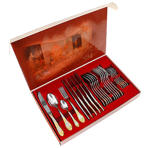 Набор столовых приборов из нержавеющей стали "Императорский" 24 предмета: вилка 20см - 6шт, ложка 20см - 6шт, ложка чайная 14,5см - 6шт, нож 24см - 6шт, нитрид-титановое покрытие, подарочная упаковка (Россия)