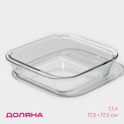 Форма для запекания Доляна Лазанья, 1.1 л, 21.518.55.5 см, квадратная, жаропрочное стекло, прозрачная