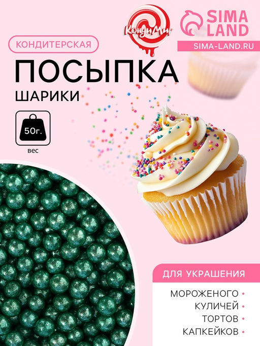 Кондитерская посыпка, серебристо-зеленая, шарики, 7 мм, 50 г