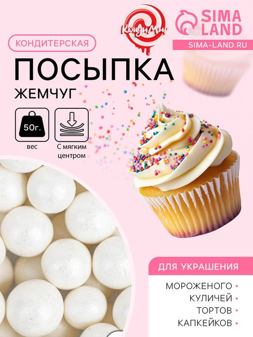 Цена за 2 шт. Кондитерская посыпка с мягким центром Жемчуг белоснежная, 12-13 мм, 50 г