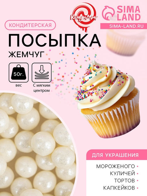 Цена за 3 шт. Кондитерская посыпка с мягким центром Жемчуг серебро, 6-8 мм, 50 г