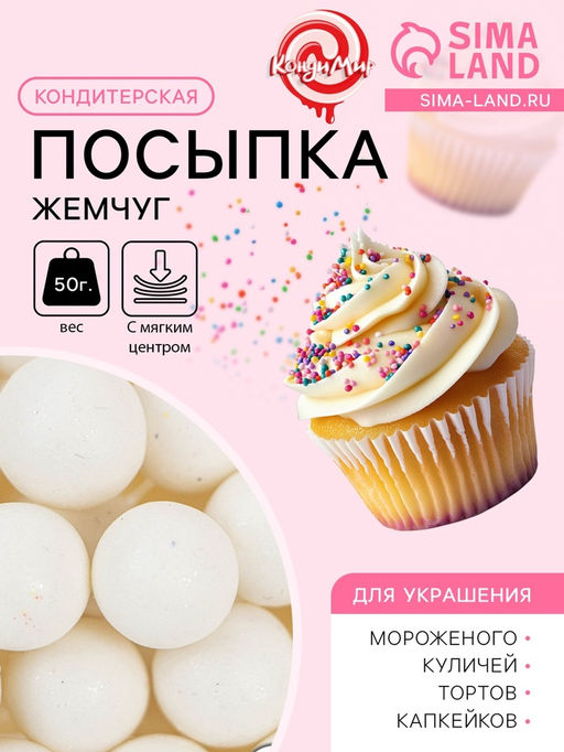 Цена за 2 шт. Кондитерская посыпка с мягким центром Жемчуг белоснежная, 12-13 мм, 50 г
