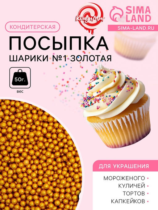 Кондитерская посыпка Шарики №1, золотая, 50 г