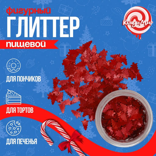 Глиттер пищевой фигурный елки красные