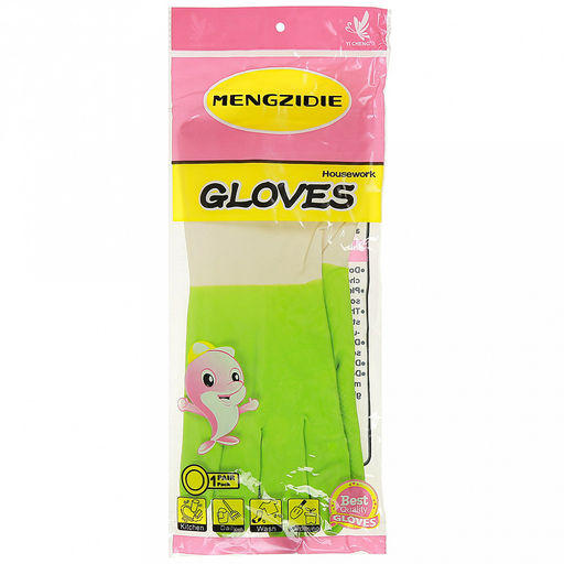Перчатки хозяйственные, латексные, размер M "Дуэт" с х/б напылением, 85гр, цвет бело-зеленый, в пакете (Китай)