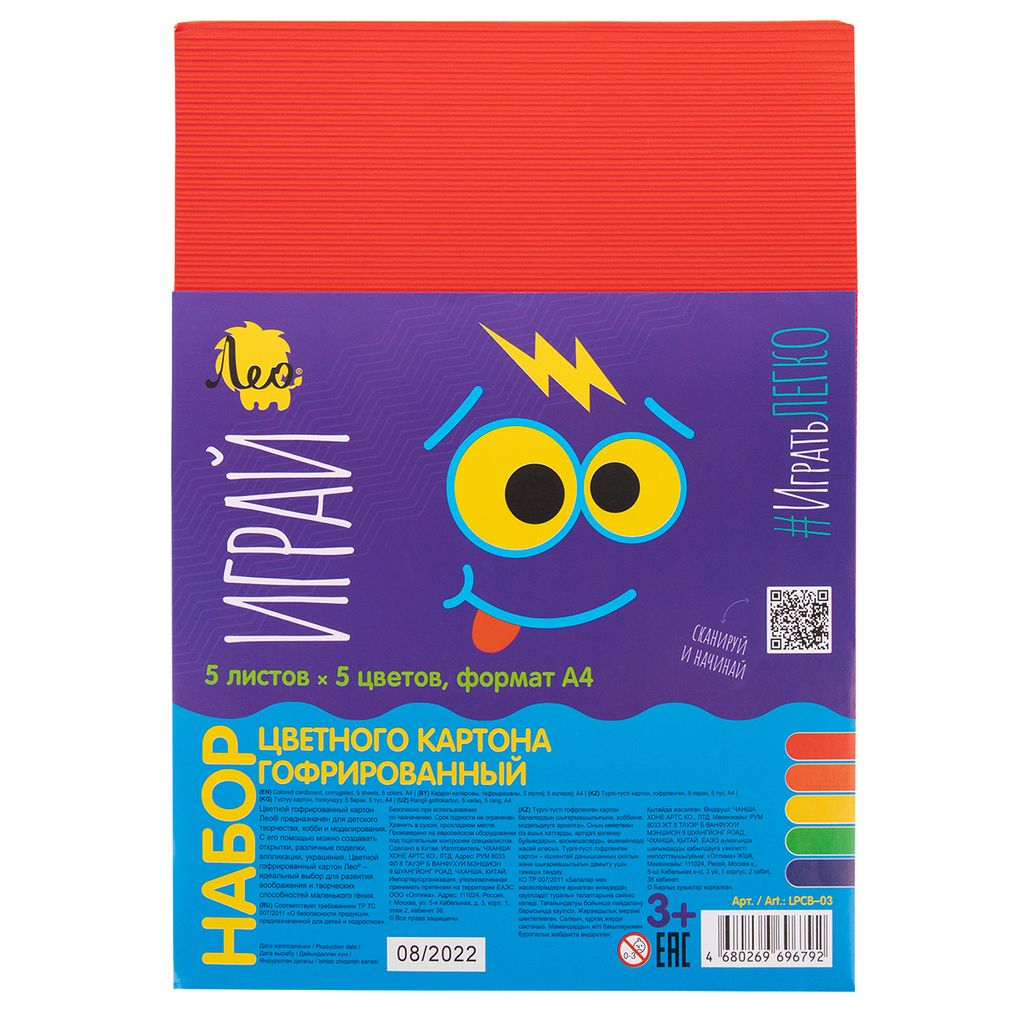 Артикул: Лео Играй Картон цветной гофрированный LPCB-03 165 г/м2 A4 21 х 29.7 см 5 л. 5 цв