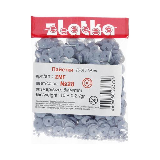 Артикул: Пайетки Zlatka россыпью ZMF 6 мм 5 х 10 г СК/Распродажа №28 серо-фиолетовый